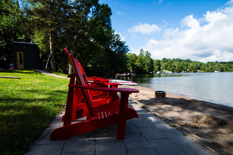 Enjoy a variety of shared amenities including a spacious sandy beach, stand-up paddleboards, kayaks, and canoes. Stay active with a basketball half-court, unwind in a wood-fired sauna, and enjoy lawn games. The property features a play structure for kids and multiple docks for your enjoyment.
